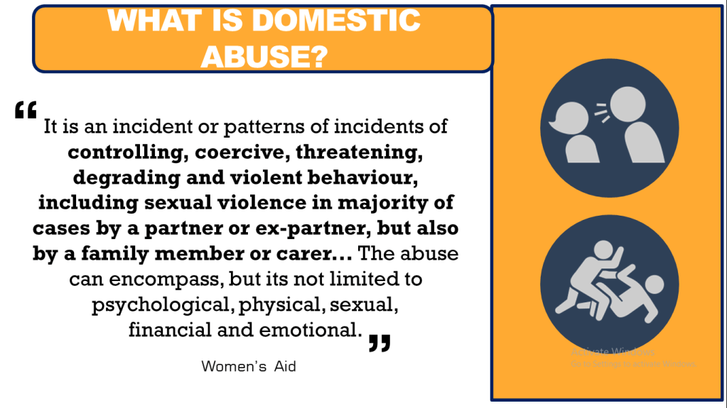 Many victims of abuse, especially amongst BAME communities recognise physical abuse as the only form of abuse. We often hear statements like “My partner doesn’t abuse me; he only controls my finances but doesn’t beat me..” The definition of domestic abuse is often an eye-opener for many victims.